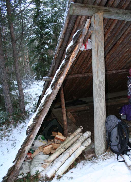 På veien dit kunne vi se at "Dagmar" hadde blåst ned flere store trær, men vi kom oss fram. Vel fremme kunne vi se at gapahuken også hadde blitt blåst på, for sideveggen hadde blåst løs fra stolpen den var festet i. Heldigvis var det ikke store skaden og det er sikkert noen som kan fikse det for oss bare det blir litt mildere i lufta.